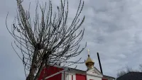 Одно из таких деревьев растет около церкви на улице Шлагбаумской.