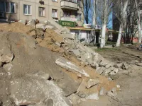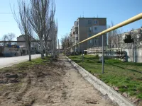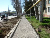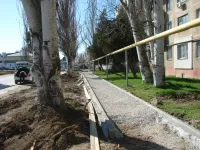 На улице Гайдара в Керчи продолжается обустройство тротуара