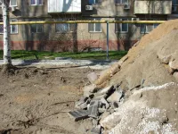 На сегодня новый бордюрный камень вдоль тротуара уложен с обеих сторон от Гайдара, 6, и до середины дома №7. Далее идет пока по одной стороне. Тротуары частично уже засыпаны щебнем.