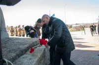 В Керчи эстафету встречали у подножия Аджимушкайских каменоломен руководители города, пограничники, ветераны и молодёжь.