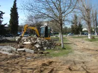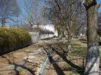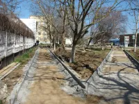 Со стороны стадиона прокладывают новый широкий тротуар.