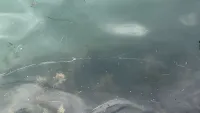 От генмола и до водной станции вода сверху имеет непрозрачный цвет и покрыта жирной пленкой.
