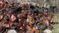 В парке Керчи устроили склад пластиковых бутылок и покрышек