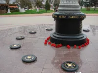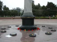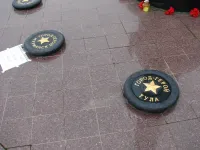На постаменте покрыли новой краской звезды городов-героев, под которыми хранятся капсулы с их землей.
