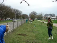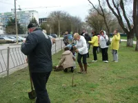 Откликнулись посетители дневного отделения Комплексного центра социального обслуживания граждан пожилого возраста и инвалидов г. Керчи, местные жители и их родственники. С энтузиазмом они приступили к работе в 10 часов утра. За час с небольшим высадили в грунт вдоль ограждения 50 саженцев. Полили и присыпали сухой землей.