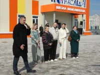 После небольшого обращения к керчанам, он пригласил всех на экскурсию в здание, где на первом этаже уже разместили информацию о группах со списками ребят на фигурное катание и хоккей.