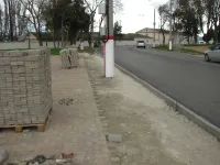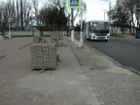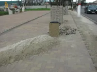 Тротуар был разрушен перед переходом на центральную площадь города на время асфальтировки автомагистрали.