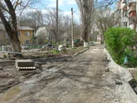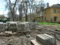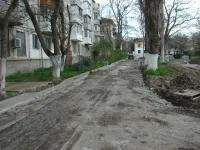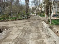 Старые бордюрные ограждения вдоль тротуаров демонтированы, с внутриквартальных дорог снят старый асфальт.