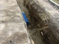 После укладки труб в грунт разрытия засыпают и сверху трамбуют щебень.