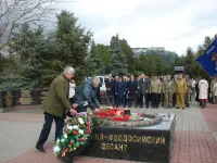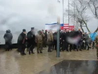 Погода "заплакала" во время возложений у Обелиска Славы - первого памятника погибшим воинам в годы Великой Отечественной войны, установленного в октябре 1944 года на керченской земле горы Митридат.