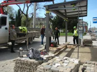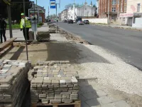 Подрядчик "СТГ-ЮГ" выполняет работы на улице Свердлова по асфальтировке остановочных карманов.
