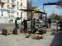Сегодня рабочие частично демонтируют остановочный павильон на остановке "Музей" со стороны набережной, передает КерчьФМ.