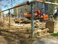 С обеих сторон остановки "Луч" разрытия засыпаны и практически полностью восстановлено тротуарное покрытие.