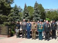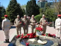 Участники торжественного мероприятия - представители руководства города, ведомств "Росавтотранс", "Ространснадзор", других подведомственных организаций Минтранса Российской Федерации, представители ветеранских активов города-героя и юнармейцы - возложили красные гвоздики к Вечному огню и почтили память погибших в боях за Керчь минутой молчания.