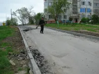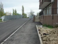 Подрядчик "СУ 7" в минувшую субботу работал до позднего вечера, завершая асфальтировку внутриквартальной дороги и тротуаров.