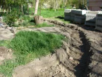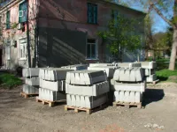 Уже частично установлены бордюры на въездной дороге и внутри двора, где потом положат асфальт.