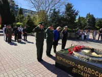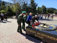 Торжественная церемония, посвященная зажжению вечного огня факела прошла в сквере Славы, передает КерчьФМ.