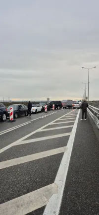 Уже более двух часов перед мостом собирается очередь