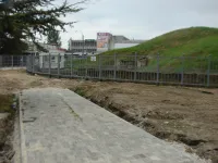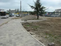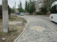 У Мерек-Чесменского кургана по внешнему широкому кругу, там, где будет тротуар, частично плитка уложена.