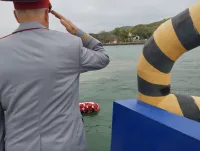 Венки и цветы спустили на воду рядом с буем.