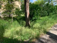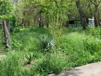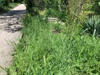 Траву скосили со стороны фасада дома вдоль дороги.