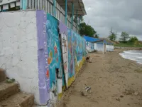 И стены, и парапеты побелили к летнему сезону. Студенты политехнического техникума украсили их тематическими граффити.