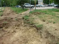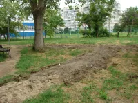 Благоустройство аллеи, ведущей к школе №26 в районе Промбазы, а точнее супермаркета "Яблоко", идет крайне медленно.