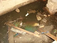 Подвал третьего подъезда по улице Юных Ленинцев, 1 две недели затоплен канализационными стоками.