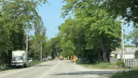 Это связано с работами по замене труб водоснабжения. Вдоль дороги разрыли много ям, водителям следует быть внимательнее. Часть из них ограждена только металлическими конструкциями.