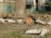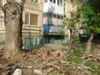 Возле дома № 5 и № 7 по улице Всесоюзной такие деревья были спилены, передает КерчьФМ.