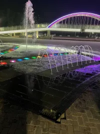 Учитывая прогулку с ребенком в вечернее время и стремление в жару поиграть со струями фонтана, нужно быть предельно внимательным, чтобы не попасть ножкой в металлическую пробоину.