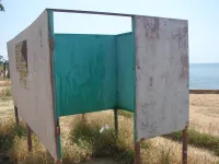 К сожалению, наступившее лето пляж встретил не в лучшем своем виде: некошеная трава, отсутствие песка, раздевалки без дверей.
