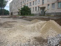 Территория размечена, бордюры установлены. Дело за малым: положить новый асфальт.
