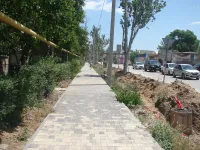 Параллельно строители устанавливают бордюры, а также выполняют подготовку к монтажу систем видеонаблюдения и наружного освещения.