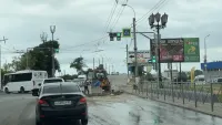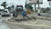 В сторону центра уже несколько дней перекрыты практически две полосы дороги. Водителям приходится выезжать на встречную полосу, чтобы объехать препятствие. Стоит отметить, что и-за этого перед светофором образуются заторы.