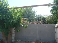 Кто и когда решил складировать через невысокий забор во двор дома ветки высоких деревьев, спиленных вдоль улицы, она не знает.
