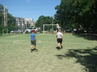 Но, на воротах нет сеток, на штангах образовались дырки, калитка на входе выломана.