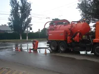 Пришлось вызывать подмогу и откачивать скопленные стоки из колодца у светофора.