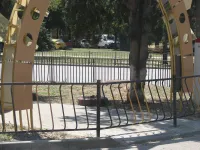 Для безопасности пешеходов центральный вход в сквер оградили металлическим забором, передает КерчьФМ.