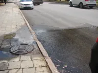 Вчера вода бежала на Кирова по улице Андрея Первозванного, сегодня струя "вздумала" бить у дома № 103.