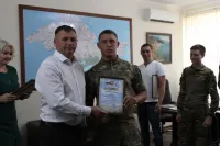 В администрации Ленинского района состоялась встреча руководства с группой бойцов по борьбе с подводными диверсионными силами и средствами, участниками мероприятия-реконструкции ко Дню ветерана Боевых действий «Диалог с героем» и главным его героем - "Джокером".