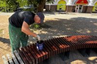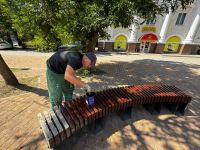 Ранее 20 скамеек и 20 урн были обновлены и установлены на улице Ленина.