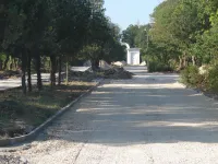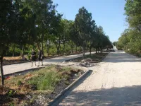Укладка основания для пешеходных дорожек продолжается, как и обустройство траншей под системы освещения и полива.