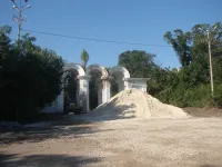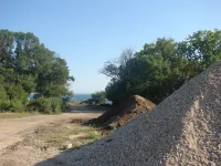 По уже освобожденным участкам прокладываются пешеходные дорожки с бордюрами.