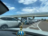 Как сообщили керчане, следовавшие в Керчь из Симферополя, попасть в город было затруднительно из-за скопления транспорта перед развязкой на Крымский мост.