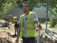 Рабочие подрядной организации начали укладку бордюрного камня по направлению от школы вдоль аллеи и на подходах к ней со стороны домов.