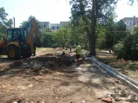 На пешеходной аллее к школе № 26 продолжается благоустройство.