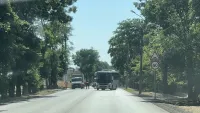 Из-за работ движение транспорта в строну бывшего аэропорта частично ограничено по одной полосе.