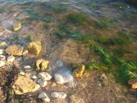 Вчера была волна, и их местами прибило к берегу.