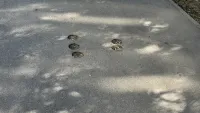 Если пройтись по тротуару, то видно, что асфальт проверяли, так как есть дыры от кернов. Справка: «керн — это проба вещества в виде цилиндрического столбика, извлекаемая в результате бурения с целью последующего исследования. Служит материалом для различных лабораторных анализов».